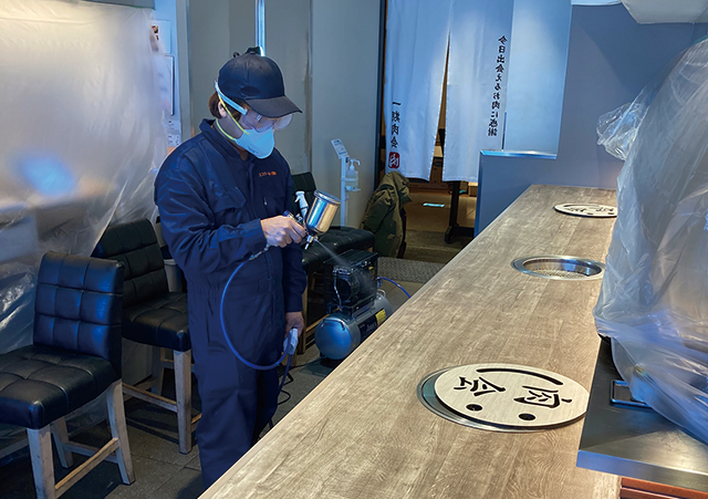 東京駅丸ビルや六本木ヒルズでも使われている光触媒で、抗菌感染対策施工致します。